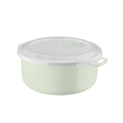Емкость можно использовать для хранения продуктов в холодильнике, а так же для разогревания пищи в микроволновой печи. В микроволновой печи можно использовать, не снимая крышки (при открытом клапане), что ускоряет процесс и предохраняет внутреннюю поверхность микроволновой печи от загрязнения. Клапан для выпуска пара имеет два положения: открыт/закрыт. Прозрачная крышка позволяет следить за процессом приготовления пищи. Емкость имеет удобные ручки.