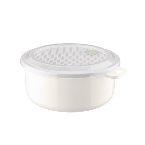 Емкость можно использовать для хранения продуктов в холодильнике, а так же для разогревания пищи в микроволновой печи. В микроволновой печи можно использовать, не снимая крышки (при открытом клапане), что ускоряет процесс и предохраняет внутреннюю поверхность микроволновой печи от загрязнения. Клапан для выпуска пара имеет два положения: открыт/закрыт. Прозрачная крышка позволяет следить за процессом приготовления пищи. Емкость имеет удобные ручки.