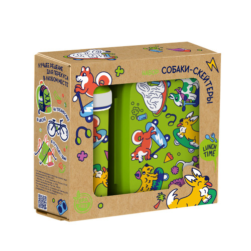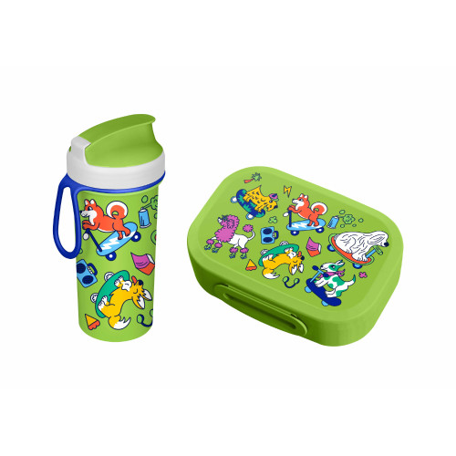 НАБОР: ЛАНЧ-БОКС 0,98Л И СТАКАН ДЕТСКИЙ С КРЫШКОЙ, ПЕТЛЕЙ И ДЕКОРОМ 0,4Л (Микс 4)