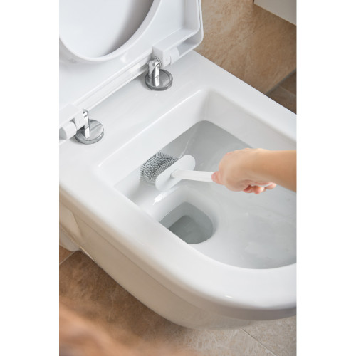 Плоский ёршик для туалета с подставкой SLIM предназначен для поддержания идеальной чистоты и гигиены вашего туалета. Мягкие щетинки из эластомера не царапают поверхность, но при этом легко справляются с любыми загрязнениями. Ёршик имеет гибкую форму и идеально чистит в труднодоступных местах, в том числе, под ободком и крышкой унитаза. К поверхности ёршика ничего не прилипает, легко смывается. Ёршик не впитывает воду, быстро сохнет, в подставке для ёршика не скапливается вода. Плоский ёршик в подставке не занимает много места. Ёршик изготовлен из прочного, гибкого, износостойкого материала, устойчивого к воздействию чистящих средств.